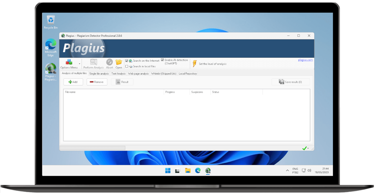 Scan a page on the internet: If the text you want to analyze is on a website, page or blog, with the Plagius Professional you can enter the URL and the program will search for similar passages on the internet.