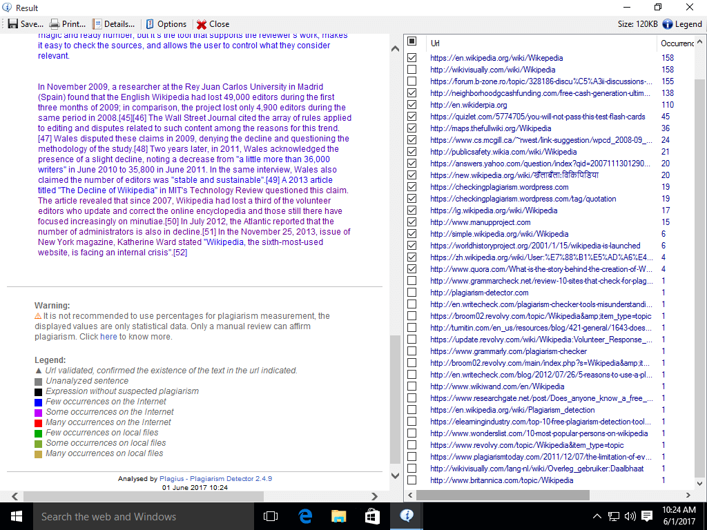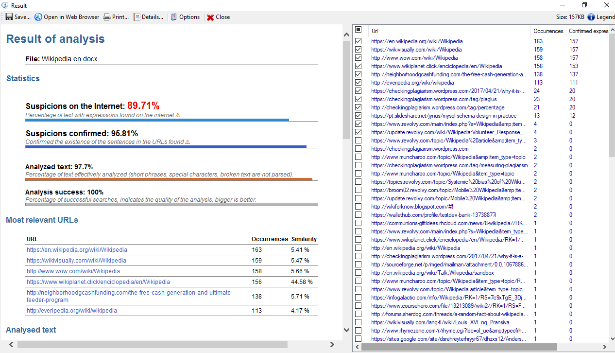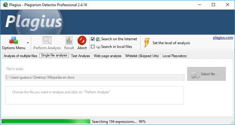 Plagius is a desktop plagiarism checker software that analyzes documents looking for suspected plagiarism by searching on the internet or in local files.